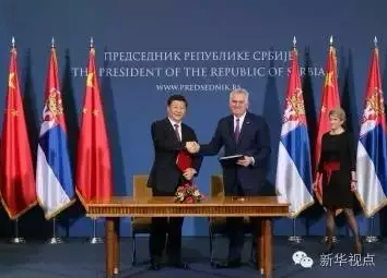 2016年6月18日,国家主席习近平在贝尔格莱德同塞尔维亚总统尼科利奇举行会谈。这是会谈后,两国元首共同签署《中华人民共和国和塞尔维亚共和国关于建立全面战略伙伴关系的联合声明》。新华社记者李涛摄