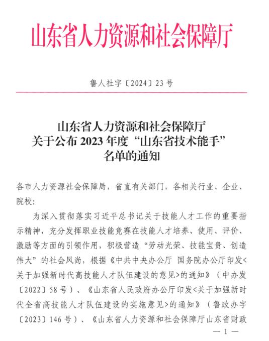 近日,山东省人力资源和社会保障厅印发《关于公布2023年度“山东省技术能力”名单的通知》(鲁人社字〔2024〕23号),我校机电工程学院吴勇老师成功入选!