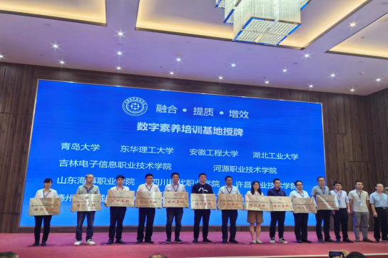 中国电子劳动学会相关领导对在课题建设研究有较大贡献的院校进行了颁奖,颁发相关会员证书,颁发首批数字素养基地证书,我校成为首批数字素养基地试点单位。