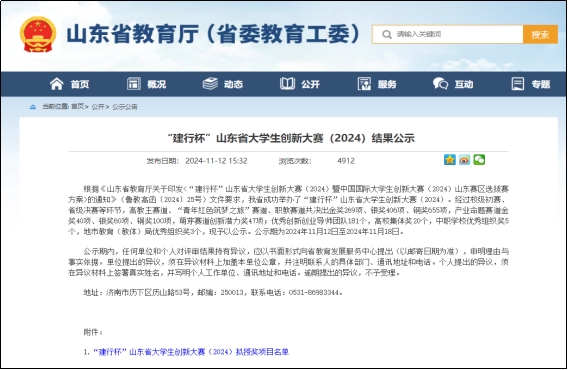 近日,山东省教育厅公布了“建行杯”山东省大学生创新大赛(2024)暨中国国际大学生创新大赛(2024)获奖名单,我校机电工程学院2023级机电一体化技术专业学生王硕(负责人)、魏志宇、任志绪、张志豪、李振东、刘天宇、李洪创(指导教师:白露、杨杨)参加的项目荣获铜奖。