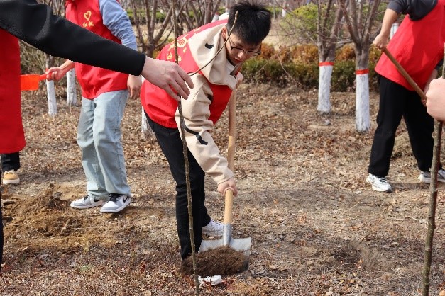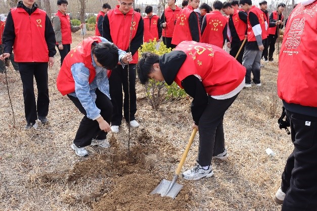 同学们分成若干小组,有条不紊地领取植树工具和树苗,迅速投入到植树劳动中。现场,同学们分工协作,配合默契。大家齐心协力,将一株株树苗稳稳地栽种在土地里。经过同学们的辛勤劳动,50余株树苗在人工湖旁“安家落户”,焕发出勃勃生机。这些新栽的树苗不仅为校园增添了一道亮丽的风景线,也为校园生态环境建设注入了新的活力。