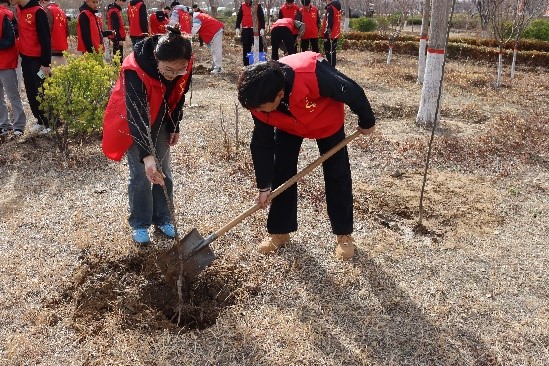 2025年3月12日,山东海事职业学院机电工程学院积极响应生态文明建设号召,组织了一场植树活动。此次活动在校园人工湖旁举行,共有60余名同学热情参与,为校园增添新绿,践行环保理念。