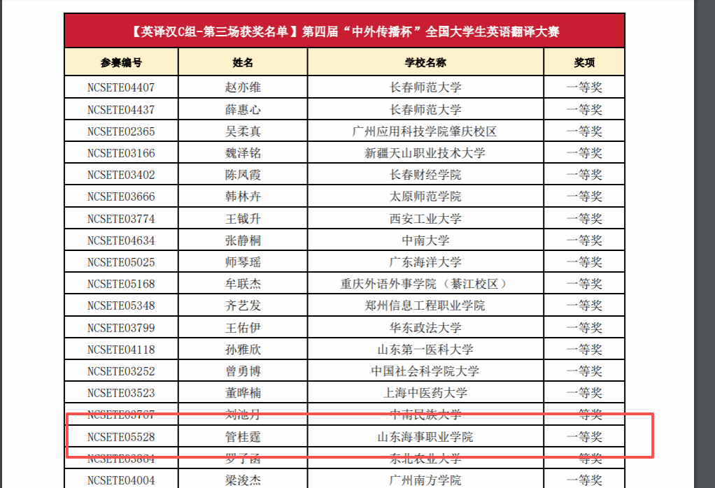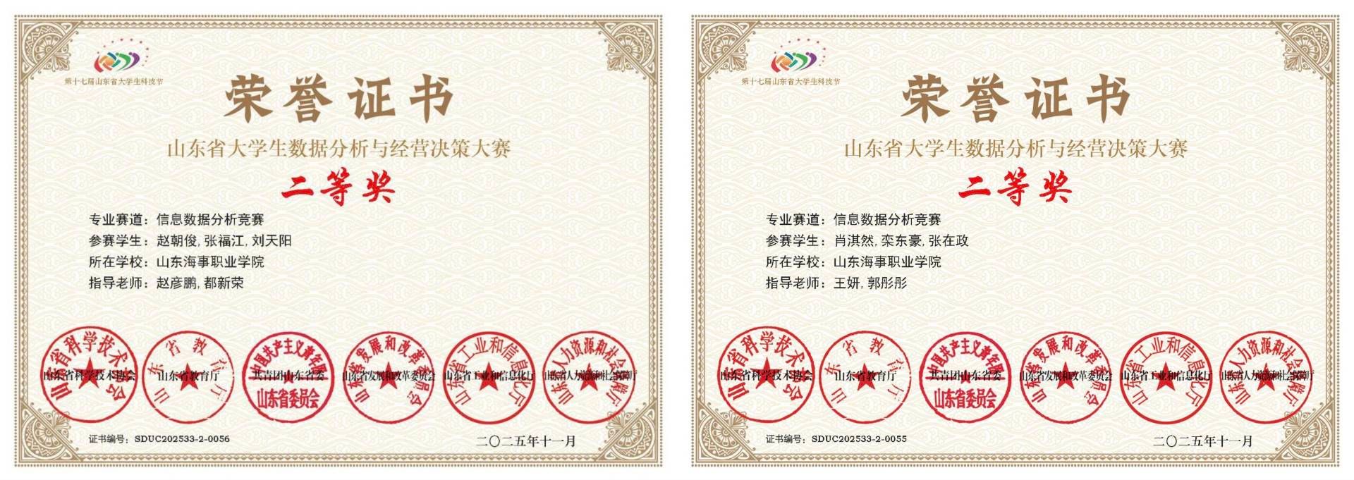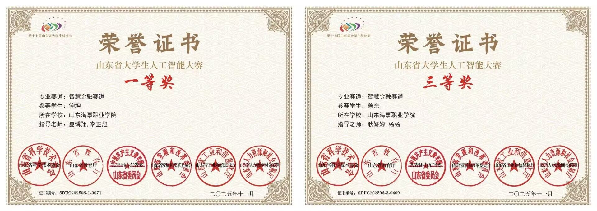 近日,我院学子在多项省级及以上学科竞赛中捷报频传,先后在山东省大学生人工智能大赛、山东省数据分析与经营决策大赛及“中外传播杯”全国大学生英语翻译大赛等高水平赛事中取得优异成绩,荣获多项一等奖、二等奖,充分展现了学院在创新人才培养方面的扎实成效。