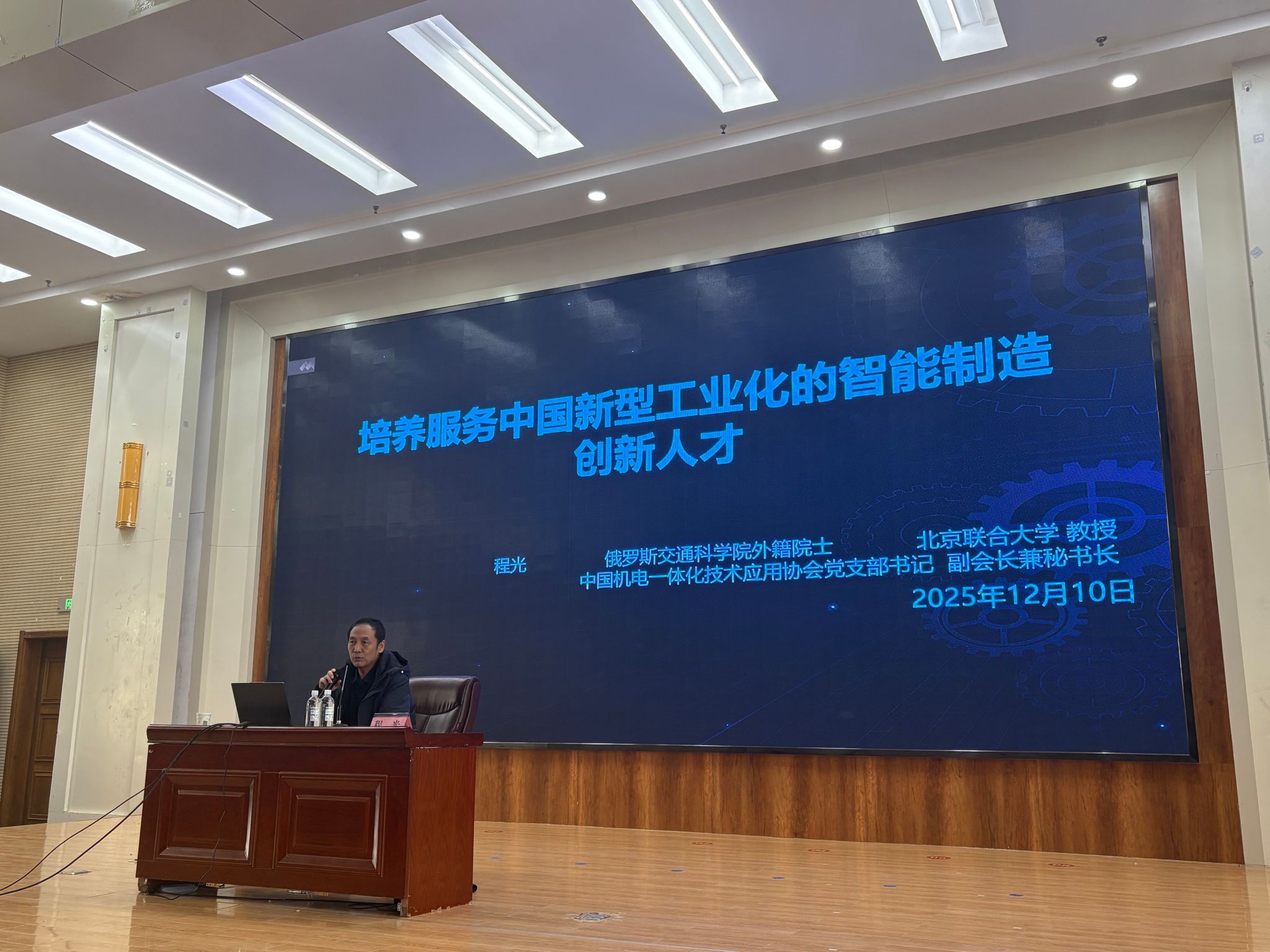 为精准对接新型工业化发展对高技能人才的需求,进一步明晰智能制造领域人才培养方向,12月10日下午,山东海事职业学院在报告厅隆重举办智能制造创新人才培养专题报告会。会议特邀俄罗斯交通科学院外籍院士、北京联合大学教授、中国机电一体化技术应用协会党支部书记、副会长兼秘书长程光博士,作题为“培养服务中国新型工业化的智能制造创新人才”的专题报告。机电工程学院全体师生共同聆听了这场前沿讲座。