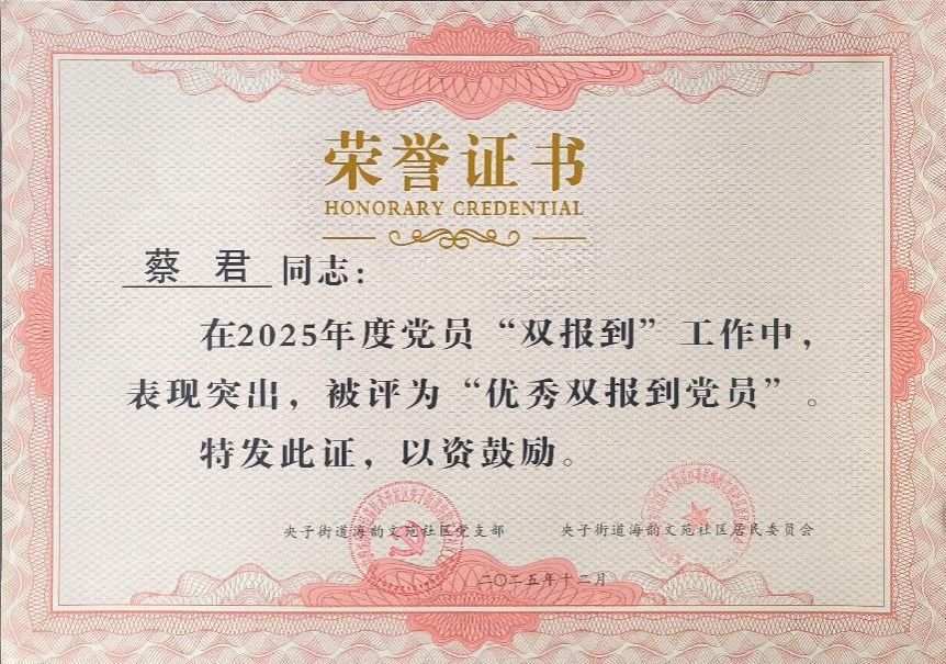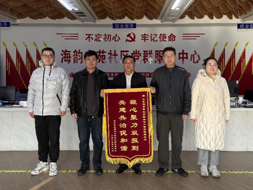 “一面锦旗既是一份肯定,更是一份动力”。2025年12月15日,央子街道海韵文苑社区居民委员会向机电工程学院党总支送上锦旗,对过去一年来机电工程学院党员在“双报到”工作中做出的贡献和对社区工作的支持表示感谢。