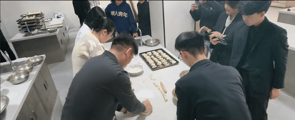 学院副院长弭剑波来到同学们中间,亲手包起饺子,并与大家亲切交流。他悉心询问同学们在校的学习与生活情况,代表学院向大家致以节日的诚挚问候。他表示,学院始终是同学们的坚强后盾和温暖家园,希望这份亲手制作的“家的味道”能陪伴大家驱散冬日的寒意。老师们也融入各个小组,一边示范技巧,一边与同学们畅谈趣事,场面温馨融洽。