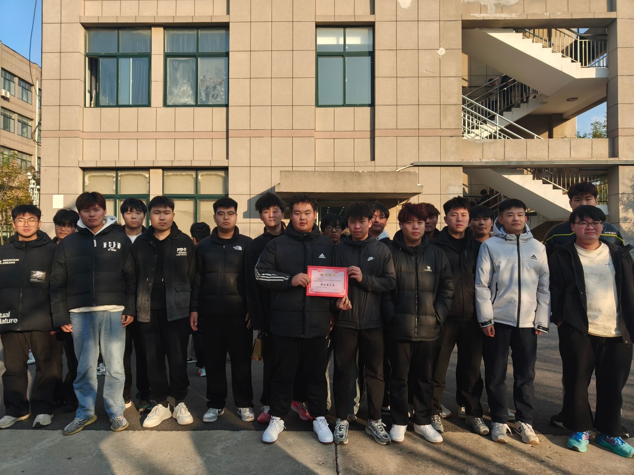 决赛时刻,现场氛围被推向顶点。电气4班队员目光坚定,随着裁判哨响,众人齐心发力,绳上红线缓缓向己方移动;新能源1班与氢能1班的对决同样精彩,队员们咬紧牙关、步调一致,用尽全力拉扯长绳,每一寸位移都牵动着全场观众的心。啦啦队的呐喊声震耳欲聋,成为队员们最坚实的后盾。最终,25级电气4班以压倒性优势赢得冠军,25级新能源1班斩获亚军,25级氢能1班荣获季军,三支队伍用实力诠释了“团结就是力量”的深刻内涵。