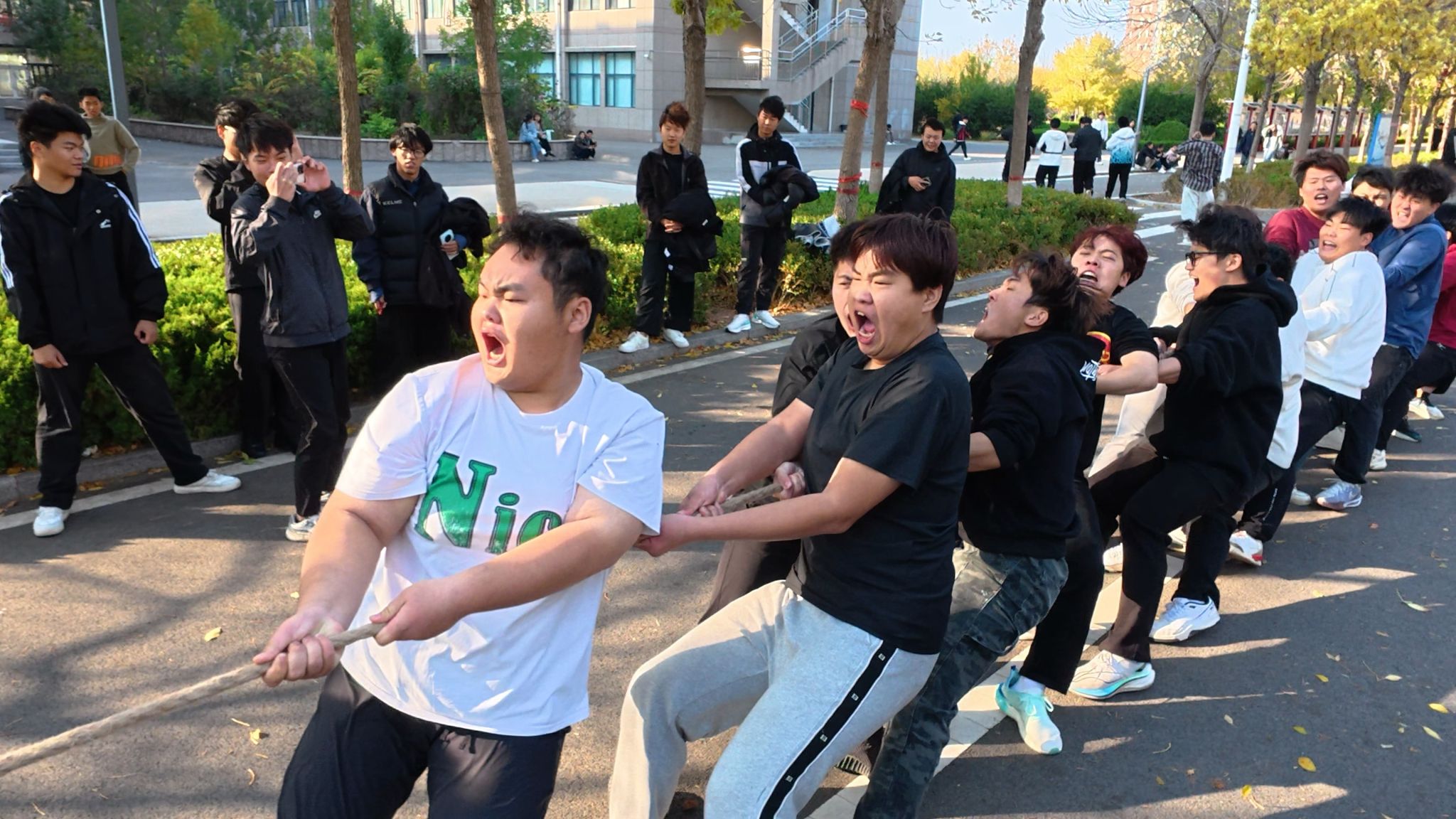 25级电气4班队员从小组赛起便锋芒毕露,展现出强劲实力。他们身姿挺拔、脚步稳扎,双手紧握长绳,每一次发力都凝聚着团队的高度默契,每一次僵持都彰显着不服输的韧劲。半决赛中,面对实力不俗的对手,他们顶住胶着战局的压力,凭借顽强意志突破僵局,成功晋级决赛。同期,25级新能源1班与25级氢能1班也一路过关斩将,以默契配合与坚韧斗志从众多队伍中脱颖而出,携手跻身三甲之争。