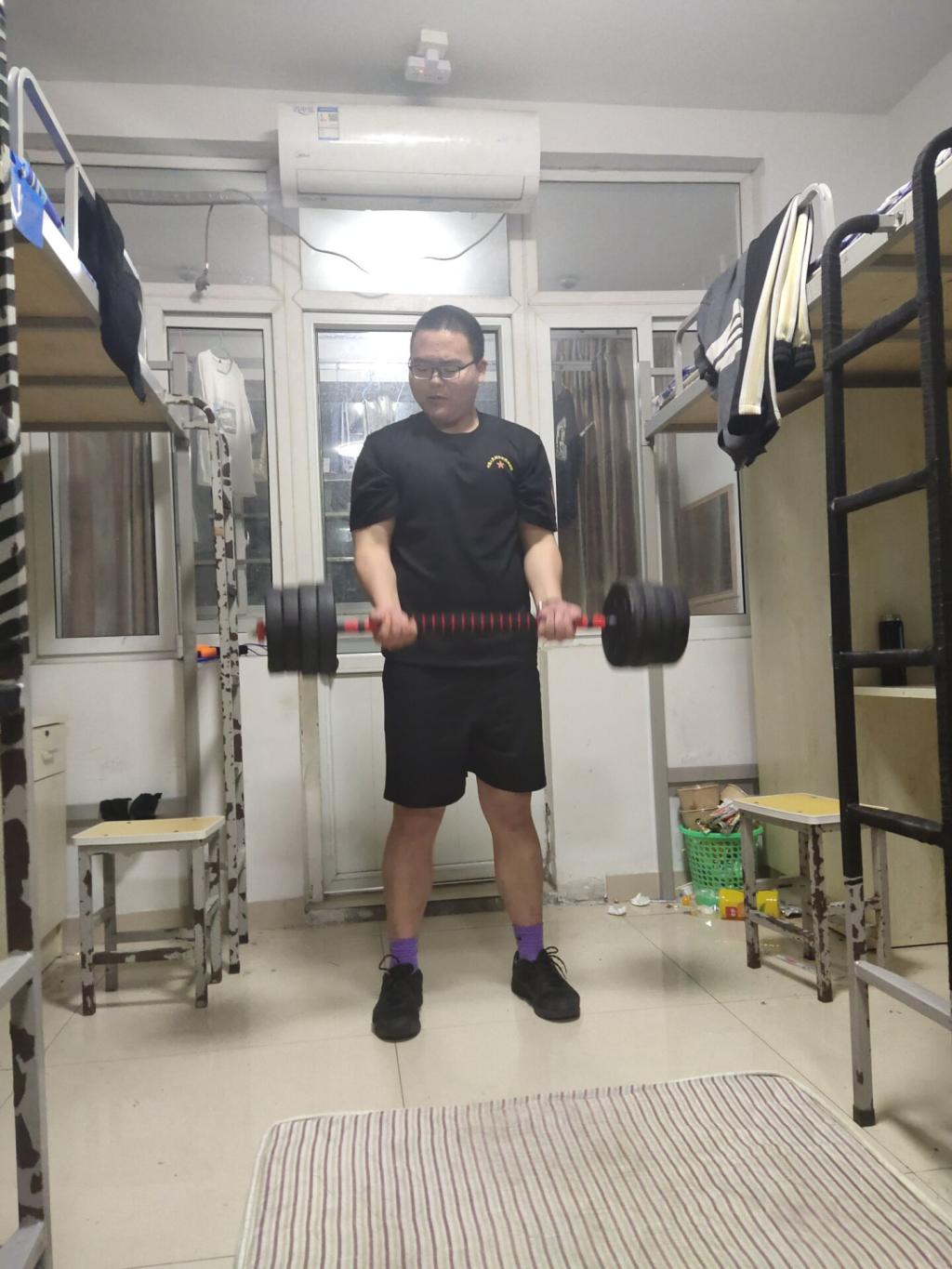 在宿舍开展举重活动