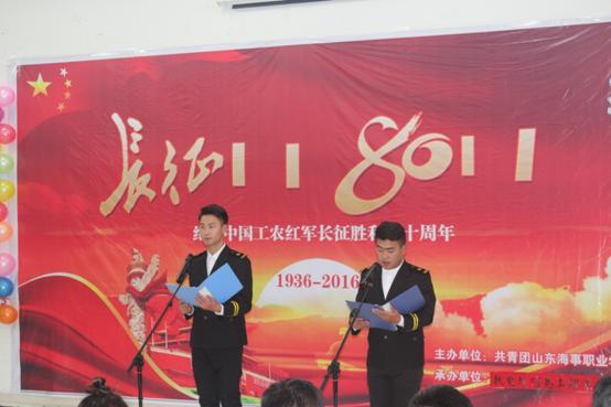 11月16下午16点,山东海事职业学院长征胜利80周年诗歌朗诵大赛决赛,在2518报告厅顺利举行,此次大赛由共青团山东海事职业学院委员会主办,机电与信息工程学院团总支承办。本次大赛是为了促进我校学生能从艰苦卓绝的长征历史中汲取革命先烈伟大的精神力量,传承以爱国主义为核心的民族精神,弘扬中华民族团结统一奋斗进取的民族思想,并给广大爱好文学和朗诵的同学一个展现自我的平台。